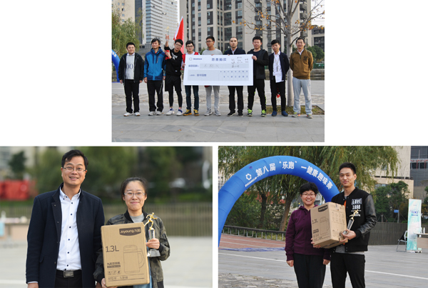 最后,乐跑队最快完成了角逐,获得了团队奖,IT系统运维组的王钟奎获得了男子一等奖,饰件采购部的孙瞳获得了女子一等奖,由股份公司总司理、总裁助理、副总司理划分为获奖职员颁奖。