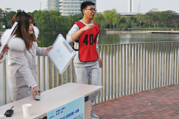 参赛团队轮门户出1人凭证指示词比划,由团队剩余职员猜,比划者只能用肢体语言的形式向猜词者转达信息,不得说出任何字,完成1个指示词后,替换比划者,猜不出可喊pass,在5分钟之内完成5个指示词,使命完成。